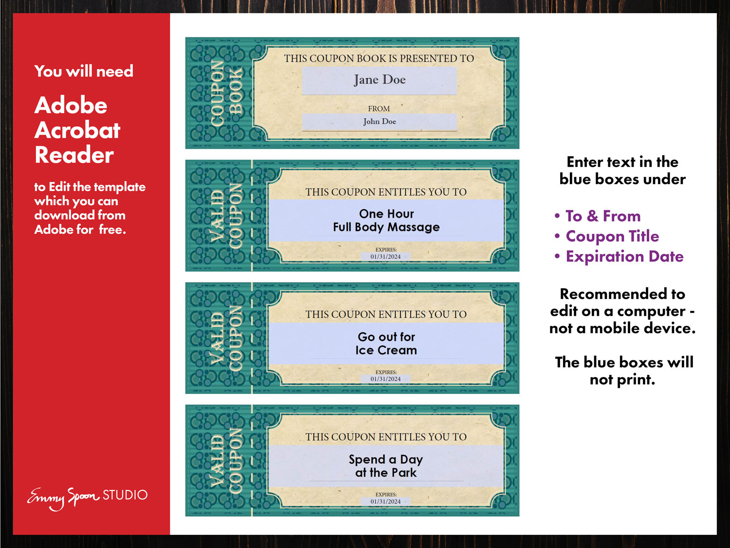 Family Coupon Book Template, Editable, PRINTABLE PDF document